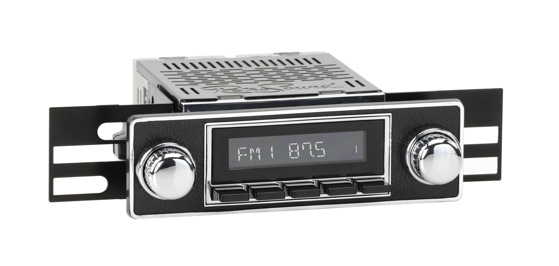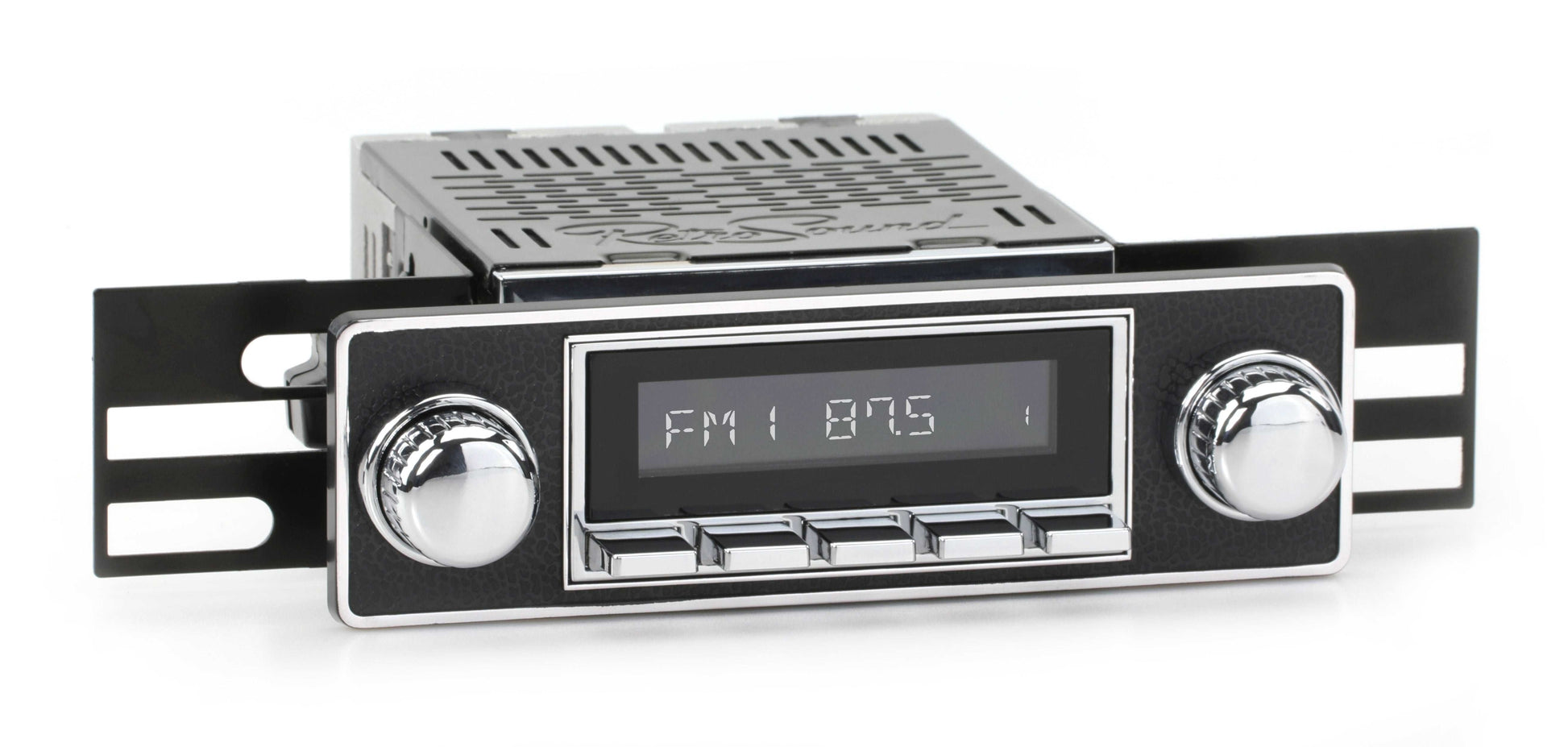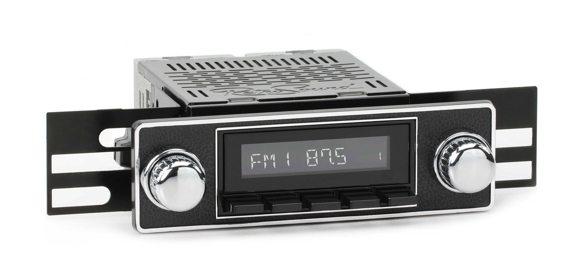 RetroRadio® looks like the original factory radio in your vehicle while discreetly adding all the modern audio features found in your daily driver. Classic push-buttons, replica knobs, and a period-correct bezel or faceplate combine with the radio's display to create a truly authentic look. For a factory-like fit, RetroRadio includes our patented InfiniMount™ Brackets that can be adjusted during installation to acheive the proper width and depth of control shafts and a flush fitment of the Radio Face. This modular system allows for the best possible installation of your classic car stereo. Assembly is required.