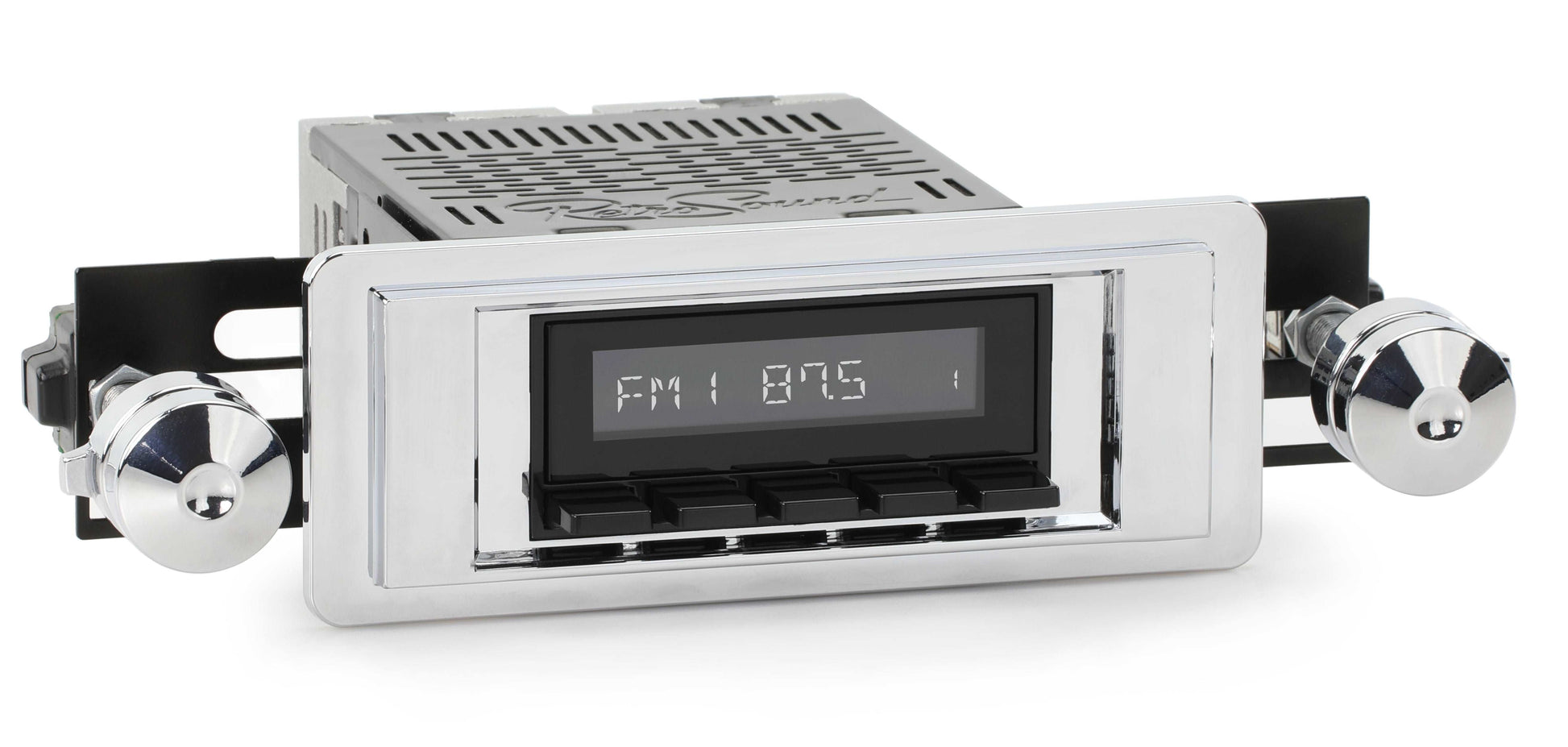 RetroRadio® looks like the original factory radio in your vehicle while discreetly adding all the modern audio features found in your daily driver. Classic push-buttons, replica knobs, and a period-correct bezel or faceplate combine with the radio's display to create a truly authentic look. For a factory-like fit, RetroRadio includes our patented InfiniMount™ Brackets that can be adjusted during installation to acheive the proper width and depth of control shafts and a flush fitment of the Radio Face. This modular system allows for the best possible installation of your classic car stereo. Assembly is required.