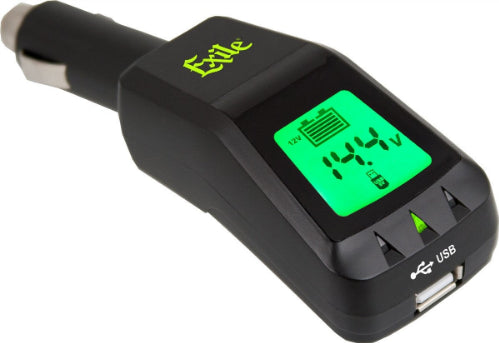 The Exile BT-1 Digital Battery Monitor allows you to check your battery's status simply by plugging it in to your cigarette lighter. The BT-1's back-lit LCD display shows you real time voltage status of your battery, and offers the added feature of charging your mobile device via the integrated USB port.