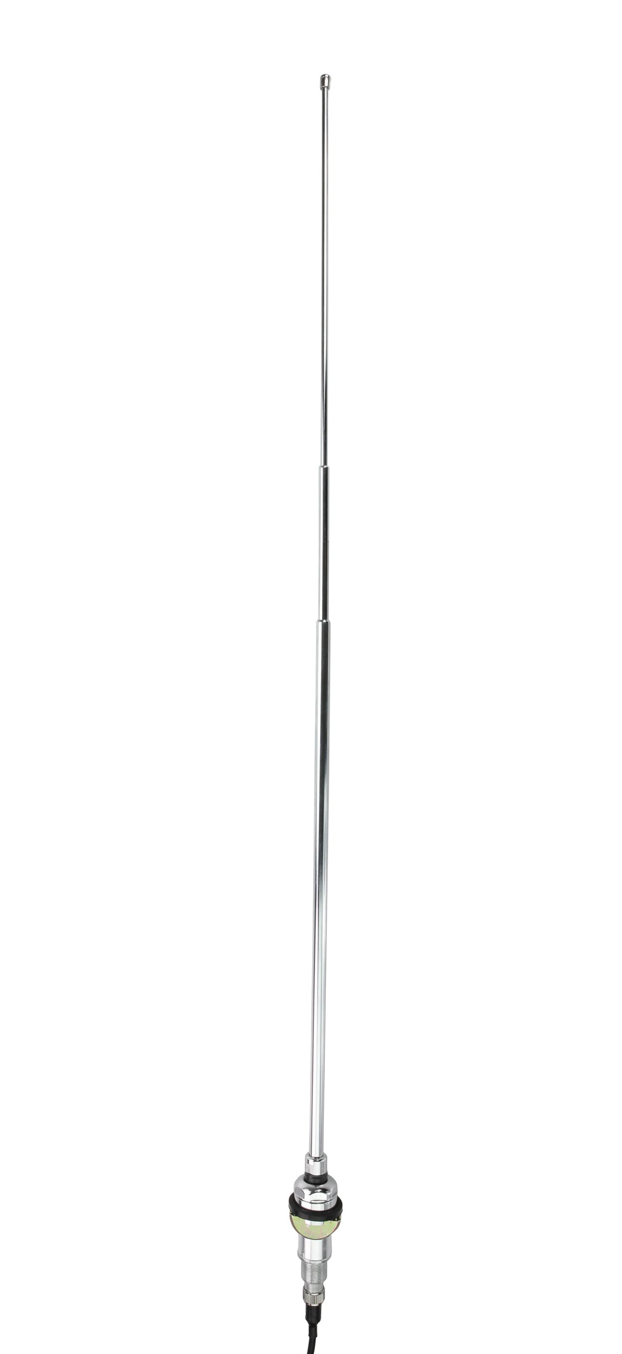 These OE-quality replacement antennas feature a chrome plated brass mast that is almost impervious to the elements and provides an improved ground plane for enhanced AM/FM reception. All metal mounting parts are used. Available with either a collapsible mast or a fixed mast. Antenna cable is included.